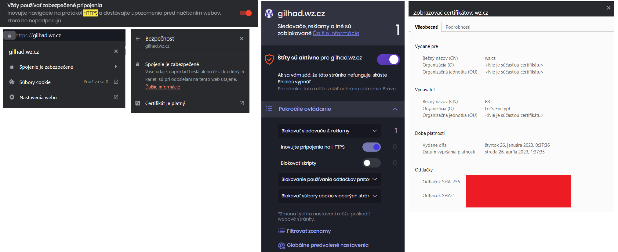 Zaujímavé, takže som práve zistil že to je v základe vypnuté a treba to v nastaveniach zapnúť. Čo presne to robí ale stále neviem. V riadku s URL adresou je automaticky pridané https://...... Spojenie označené zámkom, aj to píše že je zabezpečené, certifikát platný a je to od R3 - Let's Encrypt. Týmto sieťovým veciam nerozumiem čiže kde je pravda a čo tie informácie znamenajú?