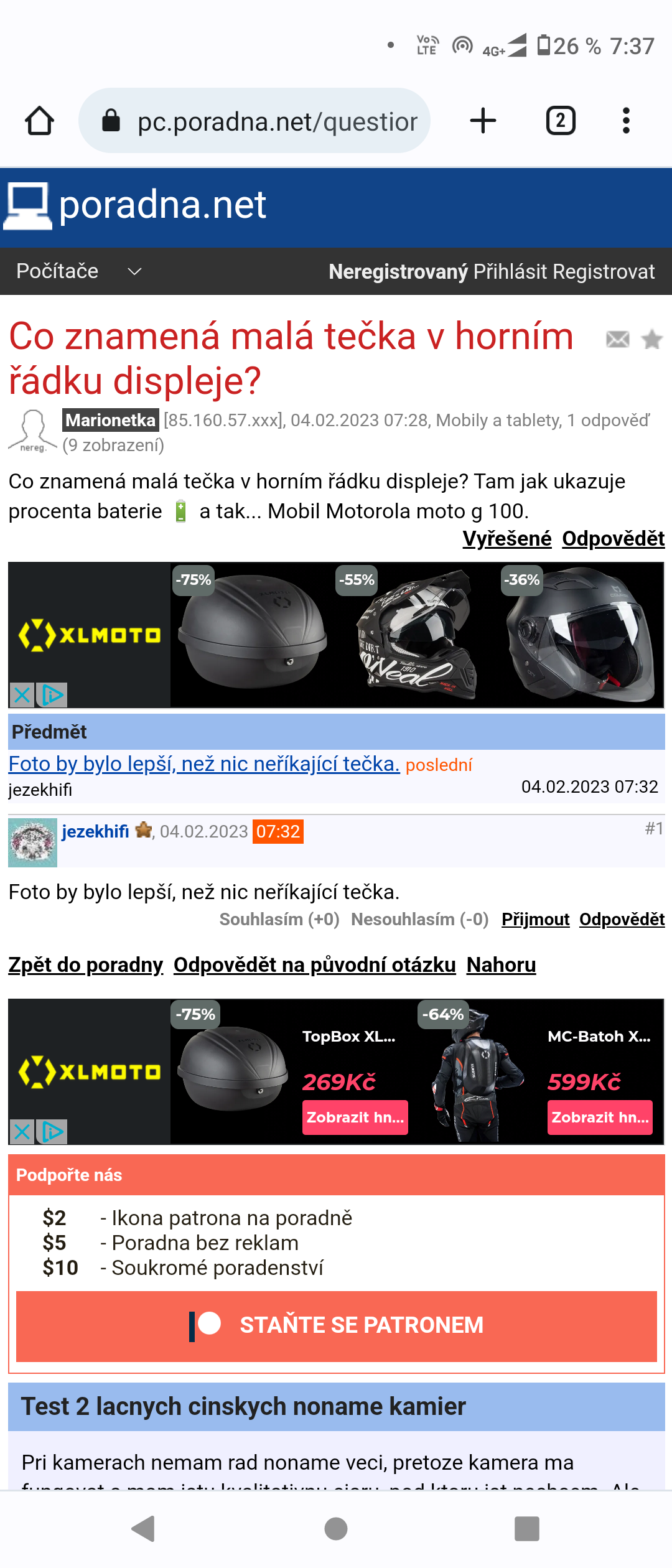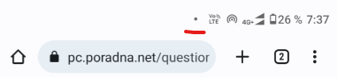 Co znamená malá tečka v horním řádku displeje? Tam jak ukazuje procenta baterie 🔋 a tak... Mobil Motorola moto g 100.