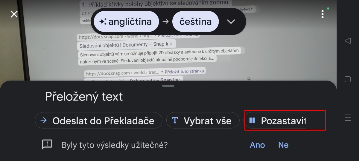 Tam pak s Lens ta kamera funguje (včetně překladu).