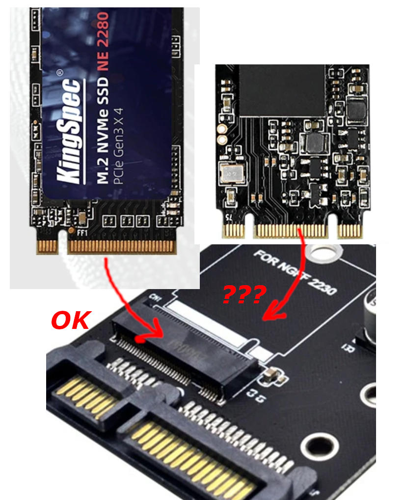 Vyskytlo se mi pár nevyužitých M2 disků, tak jsem si pro ně chtěl pořídit adaptér na SATA a taky na USB - jako "rychlou flešku". Jenže ty moje mají konektor jako třeba tento...