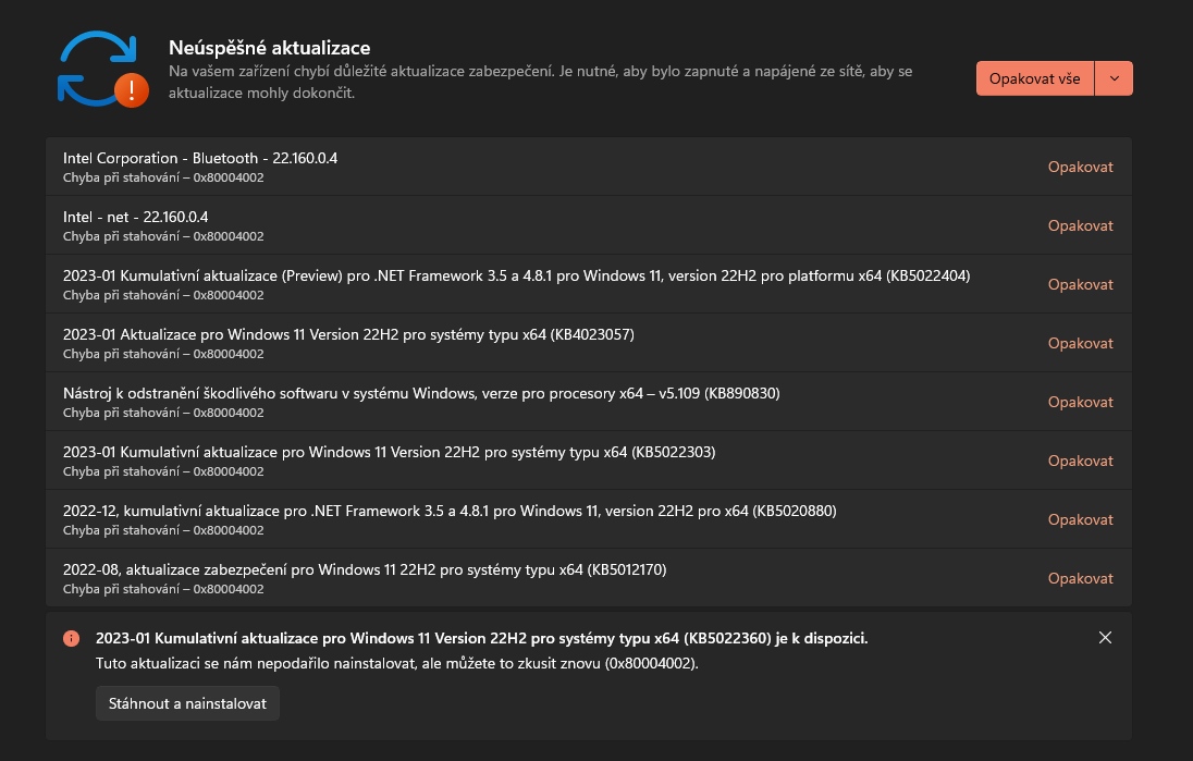 Microsoft update 22H2 totálně nezvládl, podobné psí kusy to dělá polovině lidí, jak Win11, tak Win10…