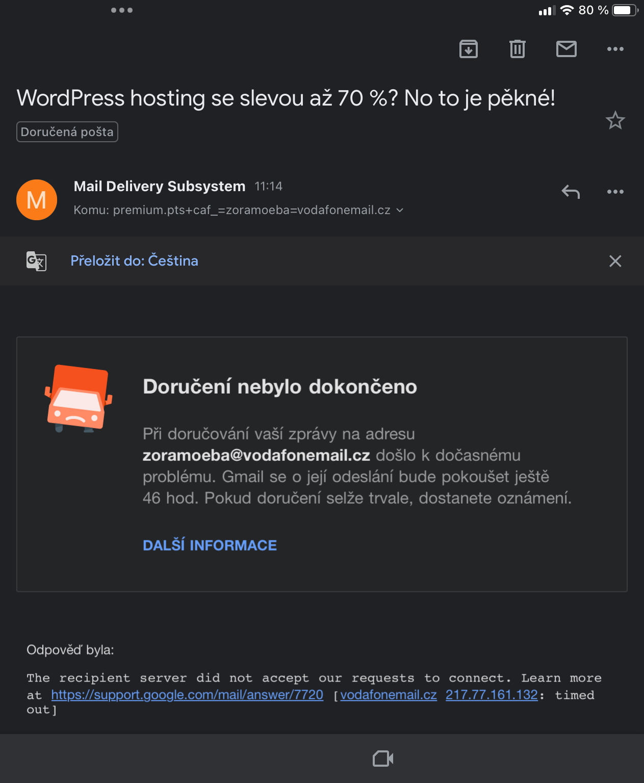 Zdravím, dopátral jste se kde byl “zakopaný pes” s nedoručitelnými emailami ?