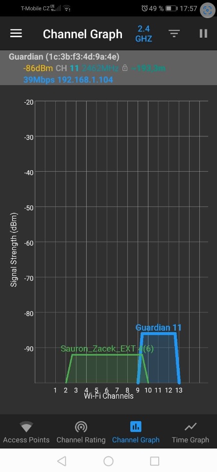 Guardian můj internet sem si už nastavil na 20 MHz a kanál 11.