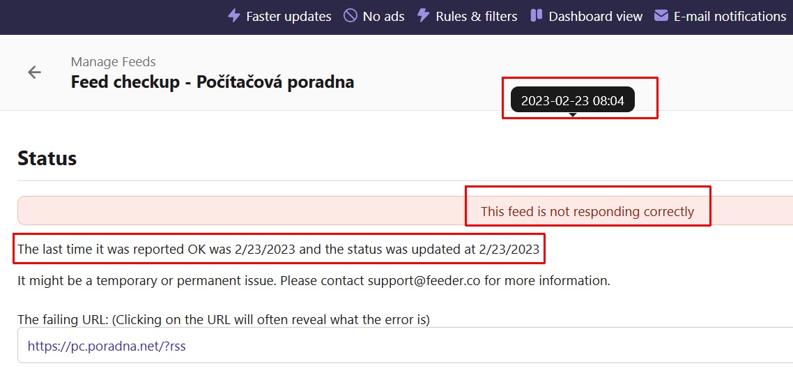 Tak jsem si ten feed z tvojeho obrázku https://pc.poradna.net/?rss přidal když jsi to napsal (a normálně se mi načetl)