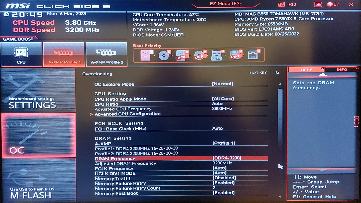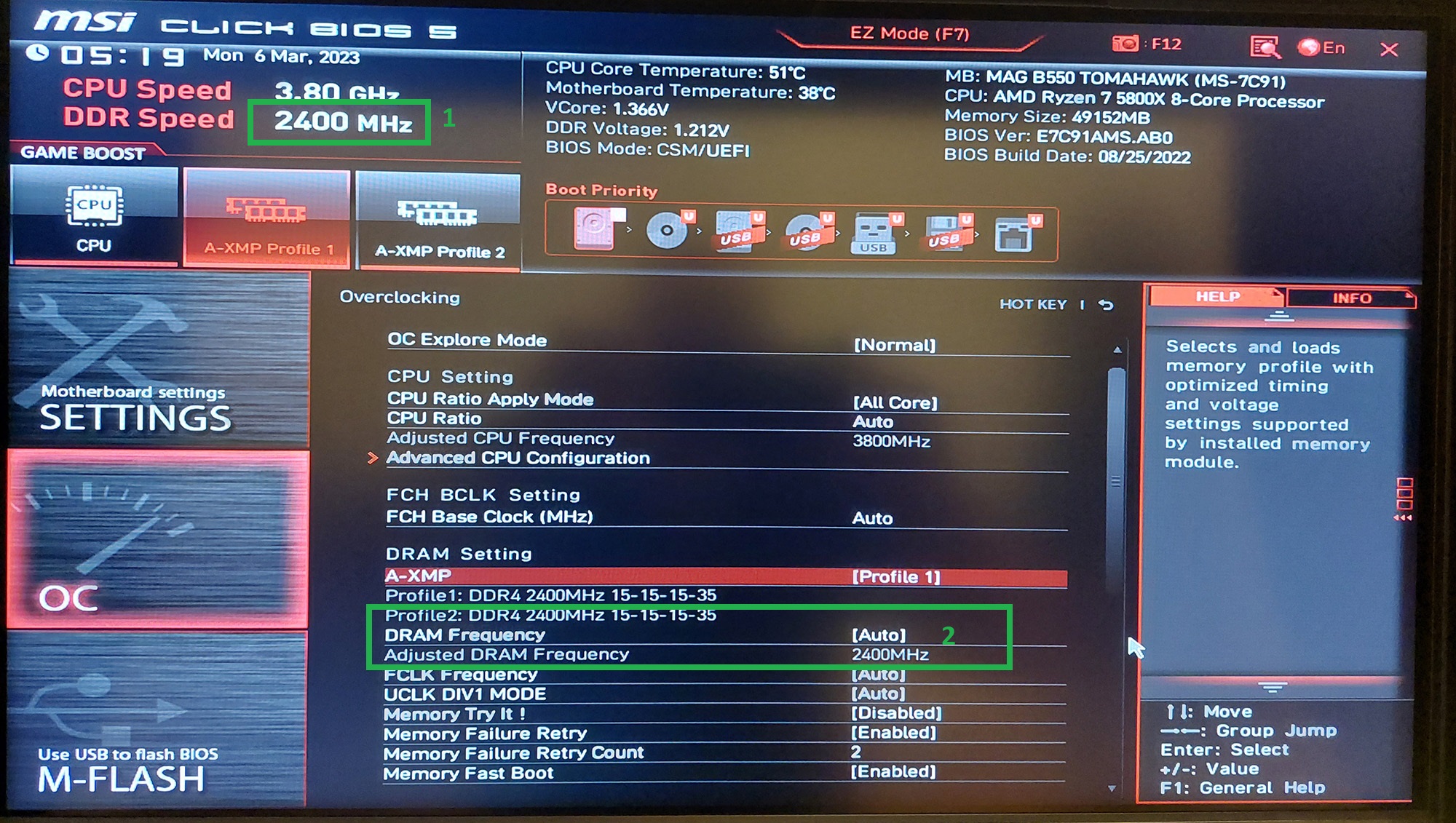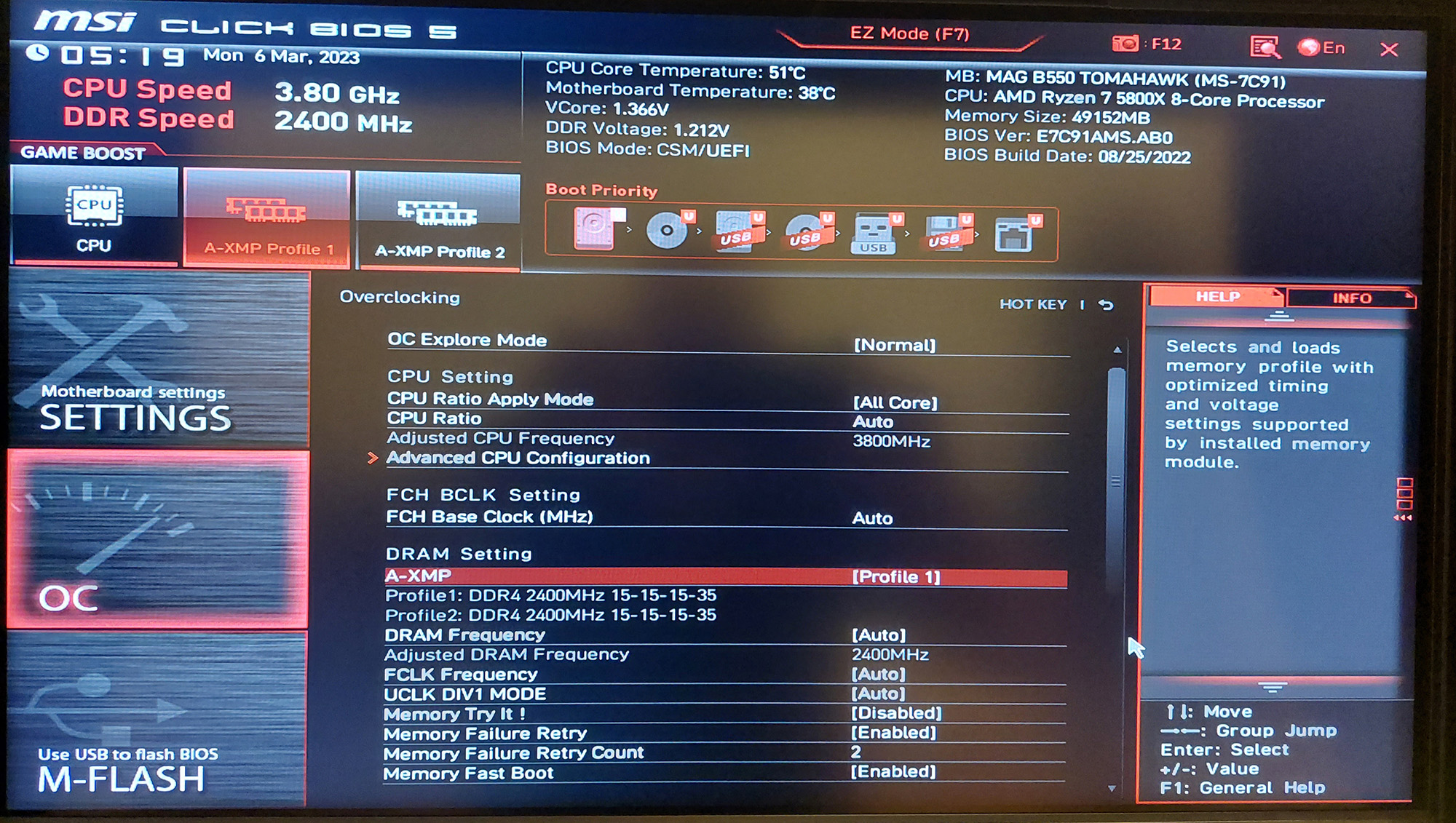U MSI silně doporučuju u XMP ručně nastavit správně (podle štítku na pamětech) Vcc (typicky 1,35V).