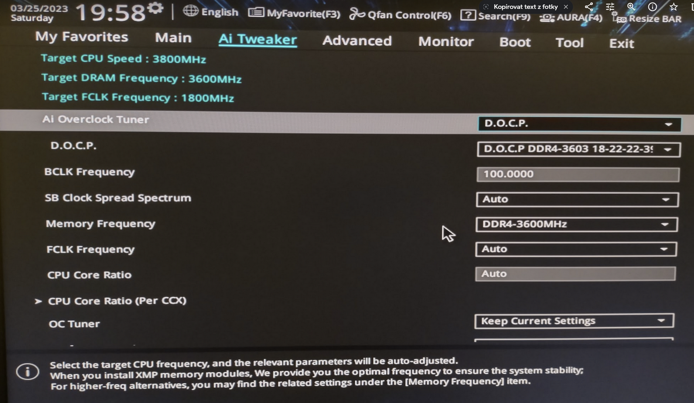 Předpokládám D.O.C.P. na enabled a Memory Frequency nechat na Auto. Je to tak?