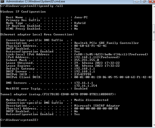 Málo informací - jaké routery, jak jsou nastavené, výpisy příkazu ipconfig /all atd...?