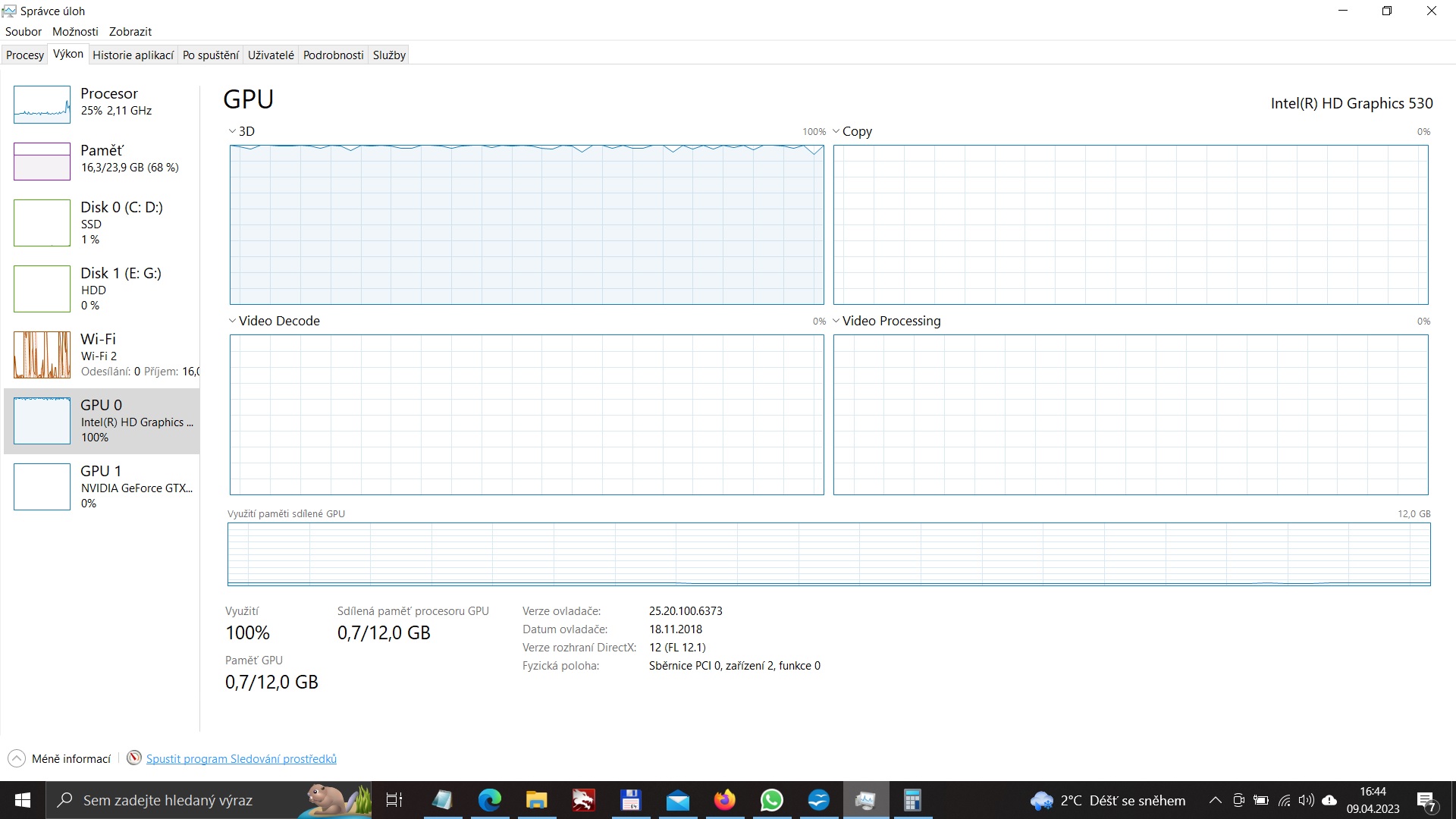 bohužel... Edge zavřen... a GPU0 pořád na 100% a GPU1 (NVIDIA GeForce) 0%...