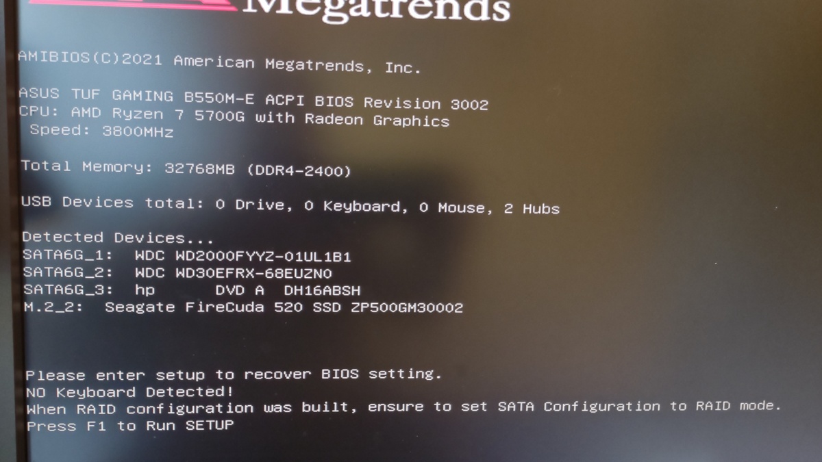 S tou klávesnicí to je jinak. Měl jsem ji odpojenou protože když jsem počítač potřeboval položit pod stolem na bok, tak nedosáhl kabel a při focení jsem si toho nevšiml a zjistil jsem to až když nereagoval na stisknutí F1. Po jejím připojení to do BIOSu naběhlo.