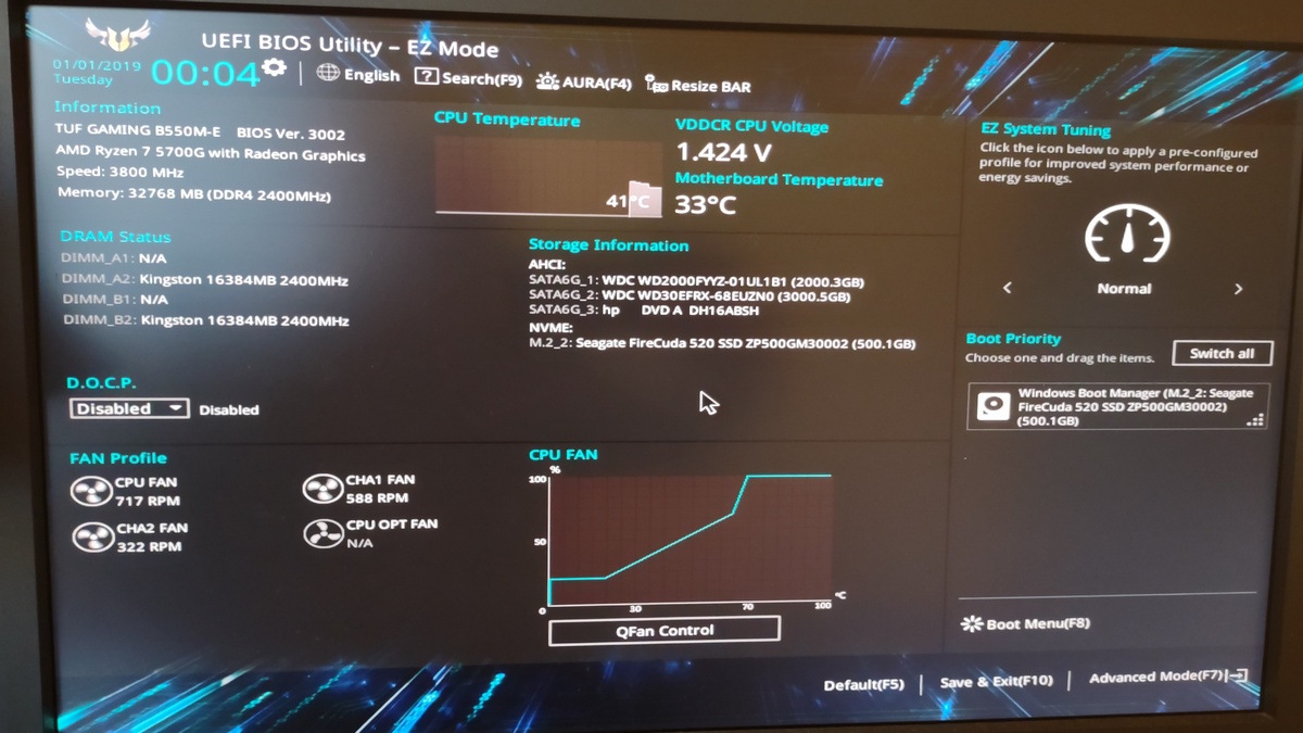 Cca před 14 dny už mě to přestalo bavit a tak jsem Windows nainstaloval znovu na čistý disk a systém opět nabíhal bez problému a to i s aktivovaným D.O.C.P. pro paměti, které tak běžely v nativní frekvenci místo 2400MHz. Včera se "něco" stalo (vliv přetaktované paměti, další aktualizace Windows ???) a systém opět nenaběhl a po několika vypnutích a několika minutách se objevila výzva (uvod-err) k nouzovému vstupu do BIOS. Po této výzvě jsem nechal BIOS beze změny jen uložit a PC naběhl.