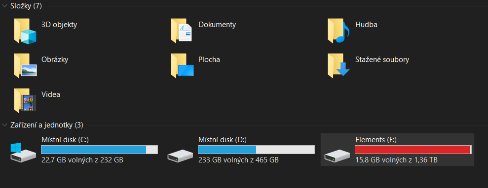 nepíšeš nic o kontrole disku, externí disk bývá hodně poškozený svými uživateli: vadným odpojováním usb za chodu. tato kontrola disku je naprosto zásadní.