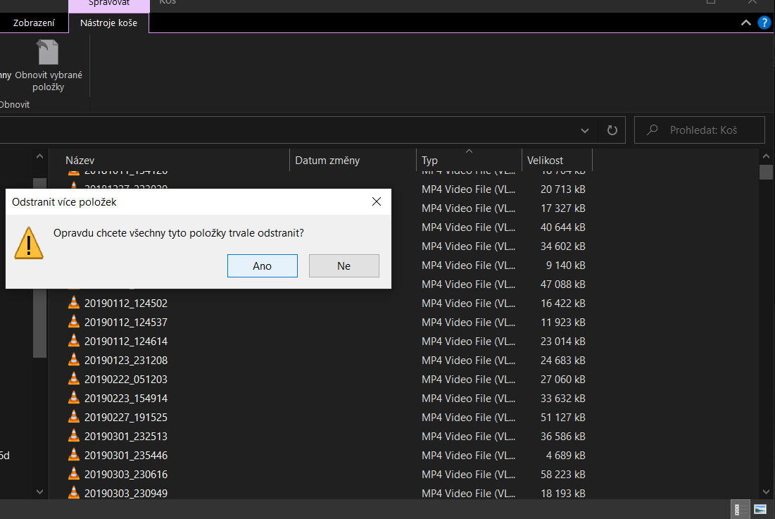 mazané soubory nehážu do koše a nevysypávám je druhým krokem, ale rovnou je mažu shift+del.