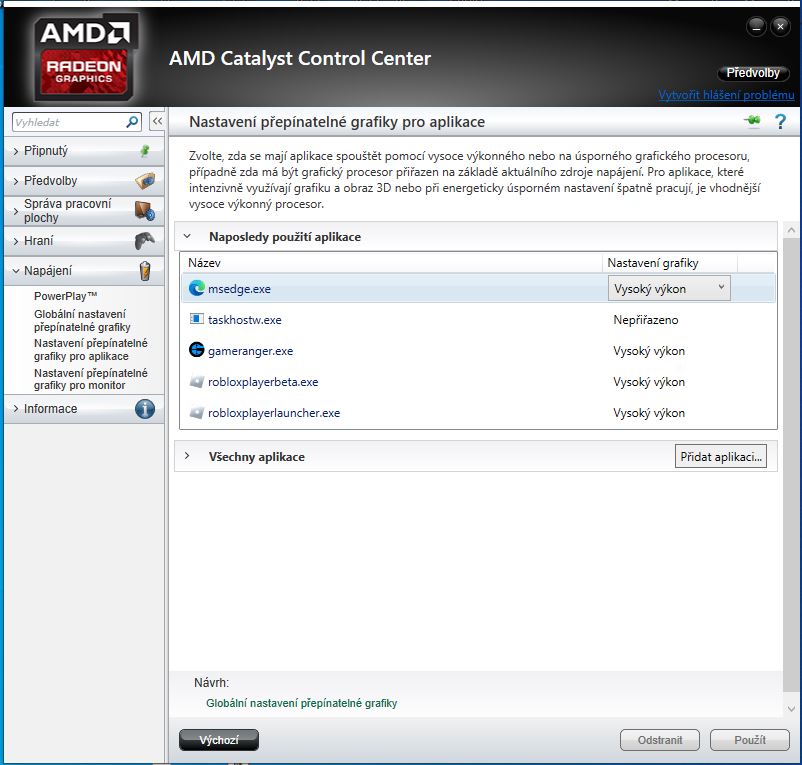 v liště níže jde vidět, že jsou nainstalovány dvaovladače na grafiku Intel i AMD.