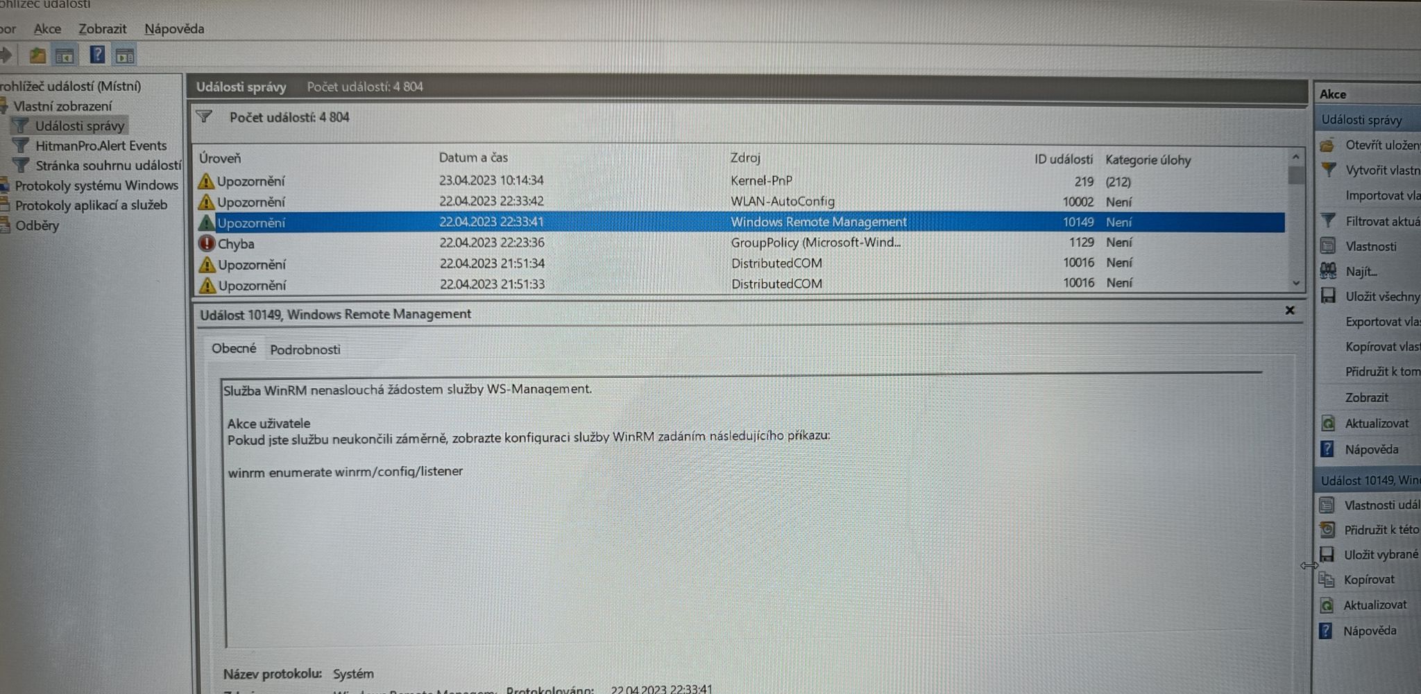 U toho event 10149 by se chtelo podivat na nastaveni winrm: get winrm (get winrm/config/service) v powershell, nebo ten port checknout pres netstat -ano | findstr "cisloportu"