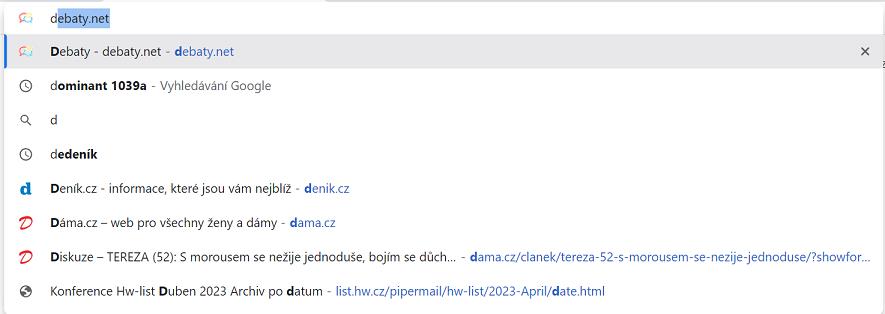 Když začnu něco hledat a zadám písmeno, třeba "d", otevře se mi okno s hesly co jsem hledal někdy předtím a už mne ta hesla nezajímají a asi zajímat nikdy nebudou. Třeba "dominant 1039a", na to rádio se někdo ptal v jedné poradně, tak jsem se kouknul, jak vypadá.