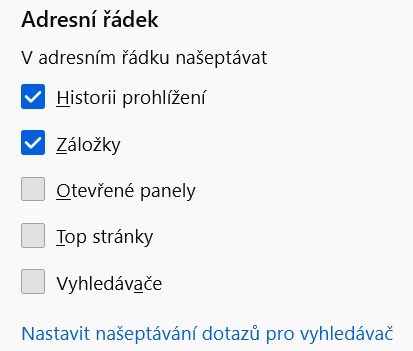 Například Firefox umožňuje volbu, z čeho bude možno zobrazovat "našeptávání".