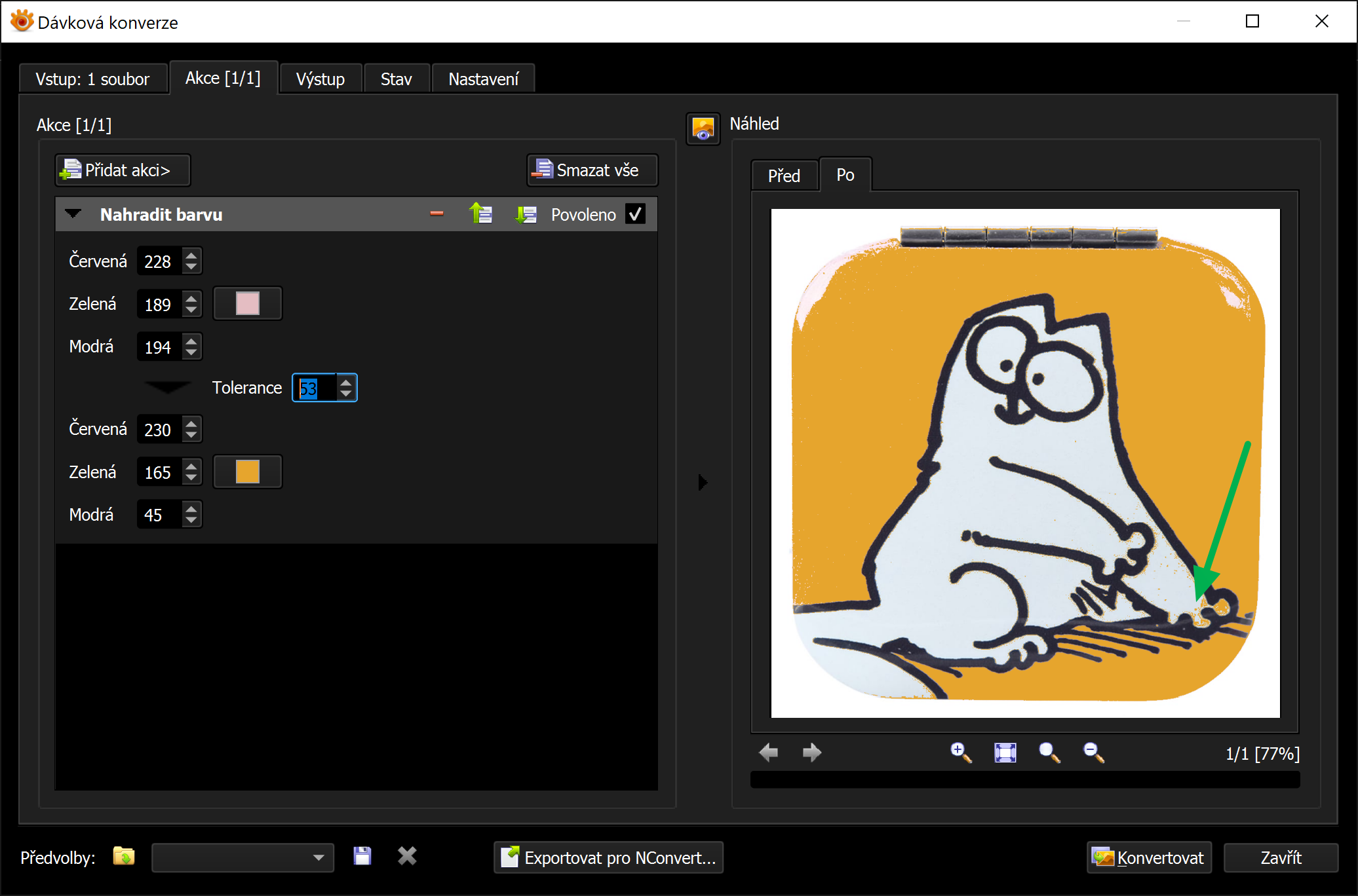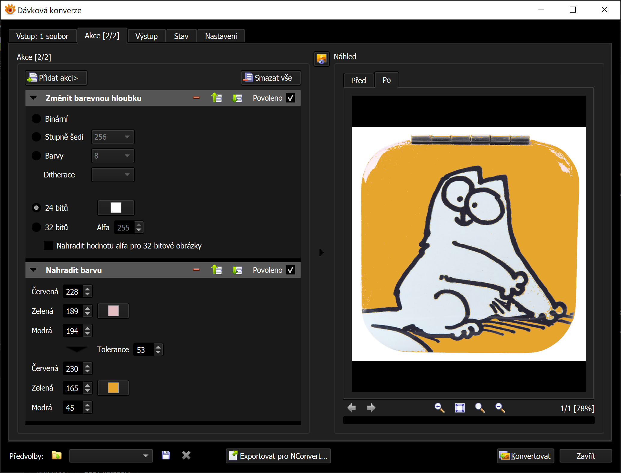 U kresby stačí snížit barevnou hloubku a potom jednoduše v paletě barev nahradit barvu(-y).