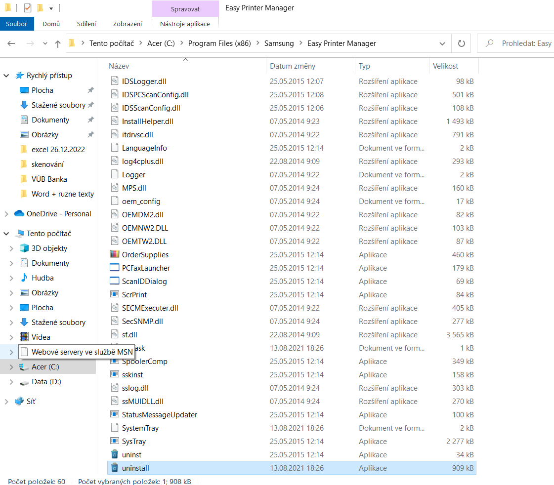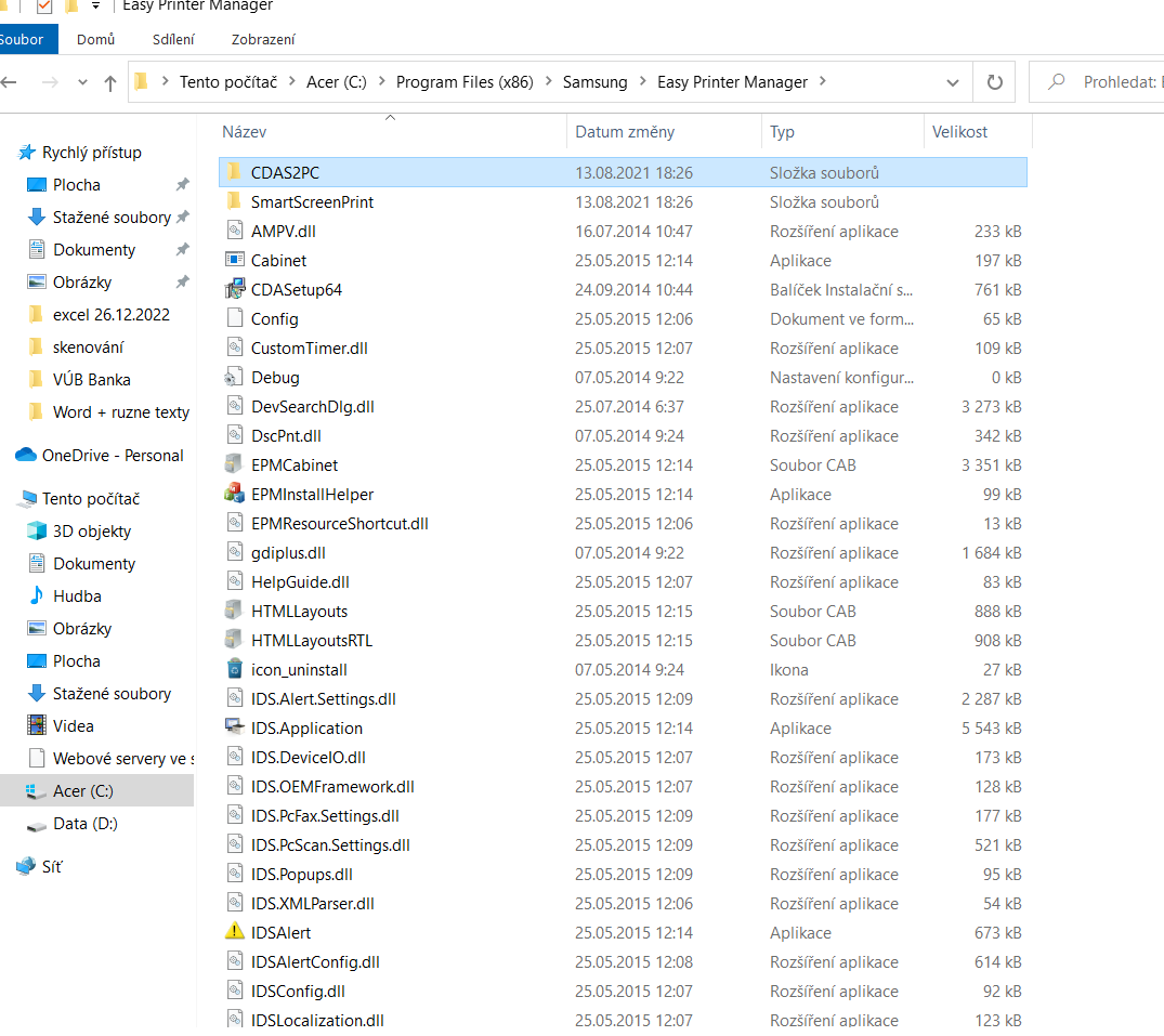 No máš tam ovladače z roku 2015, to se možná Win10 po nějaké aktualizaci nelíbí, když nové jsou z 09/2022. Zkusil bych nainstalovat jen ten Samsung Easy Printer Manager V2.00.01.35 28.9 MB Sep 30, 2022 z odkazu nahoře.