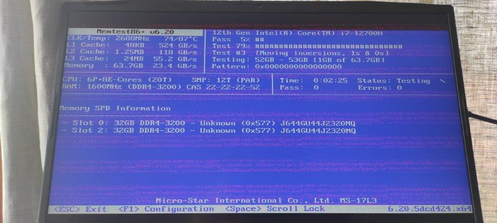 Mám problém s nestabilitou nového notebooku nadupaného MSI, který jsem doplnil o 64 RAM. Záhadně se mi ale do cca 30 min od zapnutí zasekne. Nepomůže nic než restart.