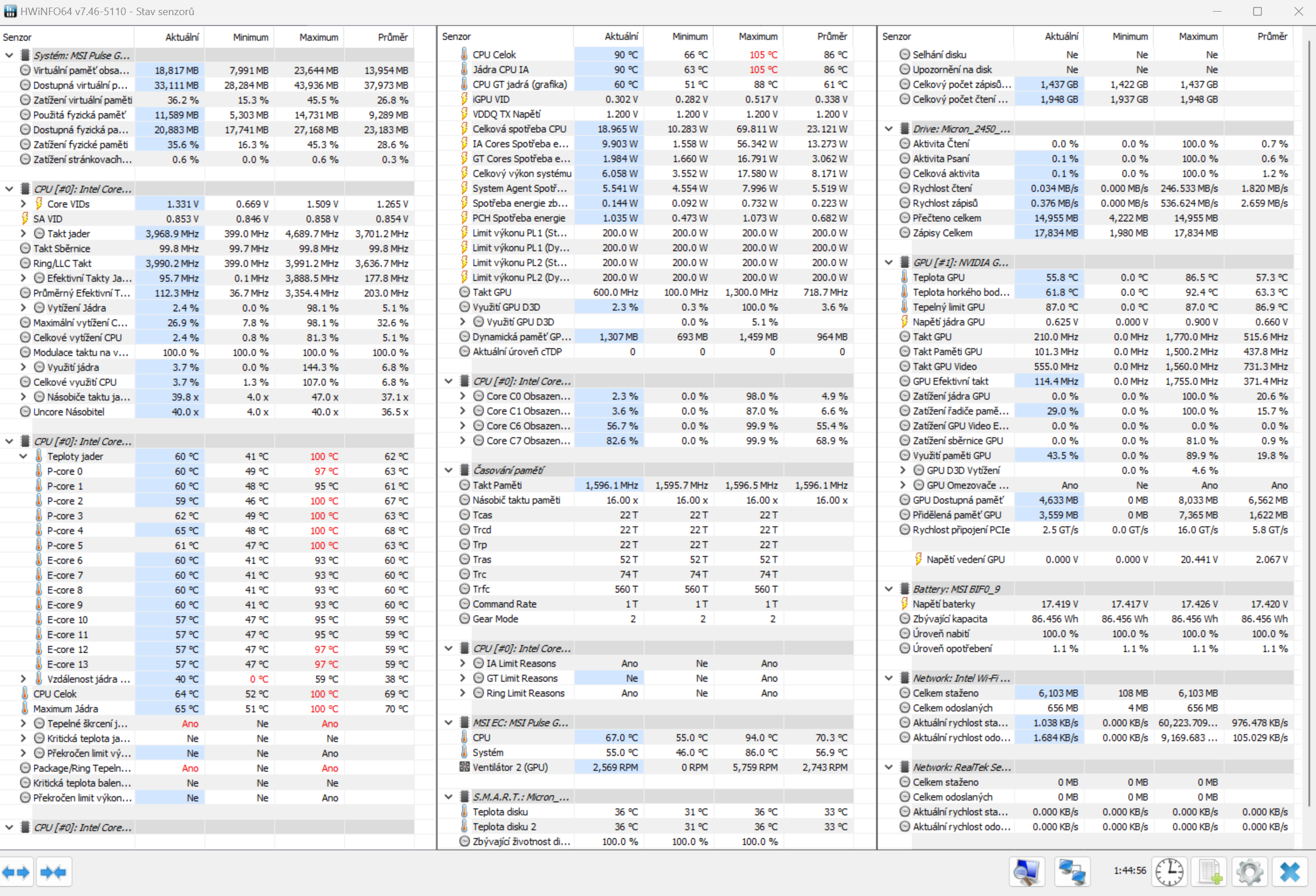Notebook je MSI PULSE GL76. RAM není volně přístupná, musí se při výměně dovnitř. RAM původně 2x 8GB…