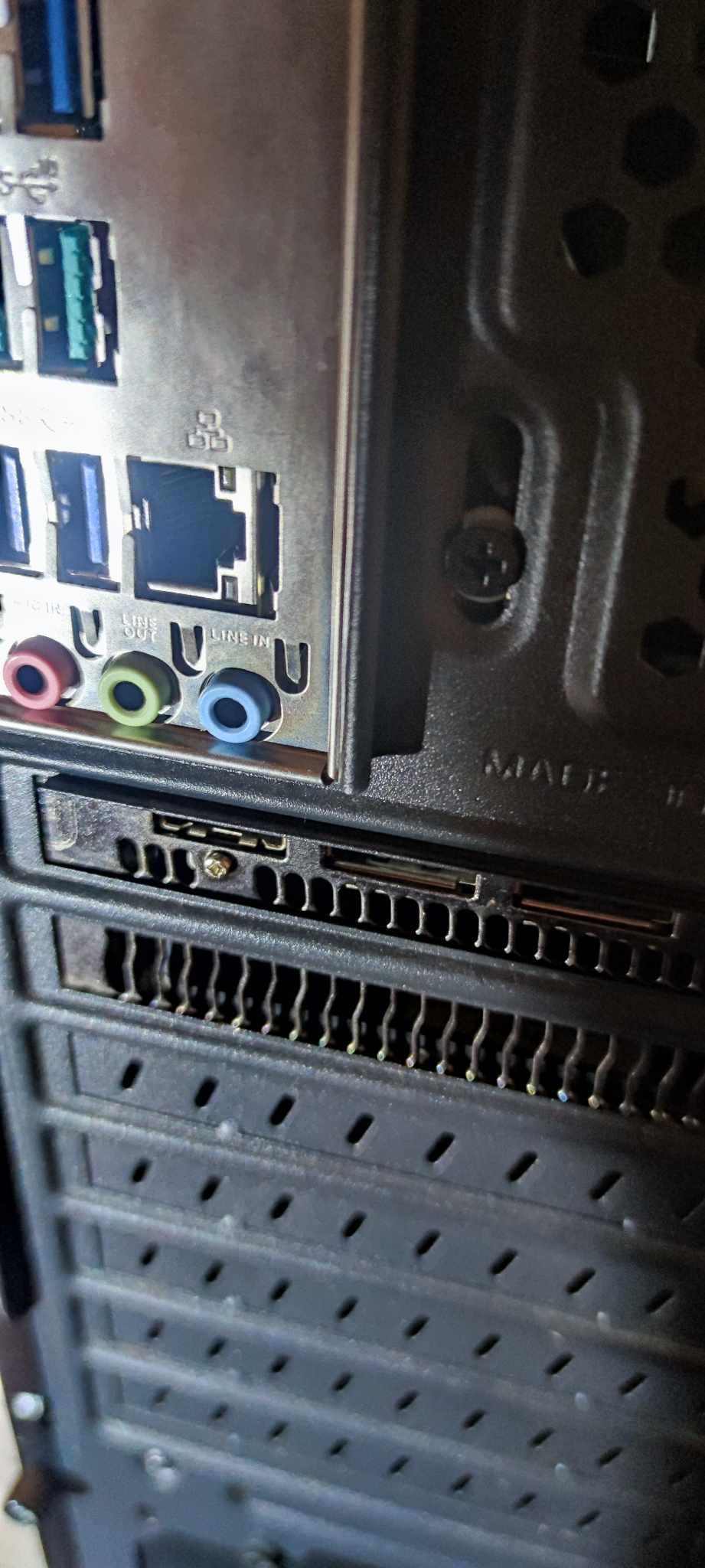 Ta první záslepka bývá volná, takže špatná kombinace skříně (asi nějaká levná, viz už vylamovací záslepky) a desky, možná microATX - slot je kvůli minimální velikost desky v nejvyšší pozici.