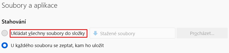 V prohlížeči si nastav ukládání souborů na určité místo,