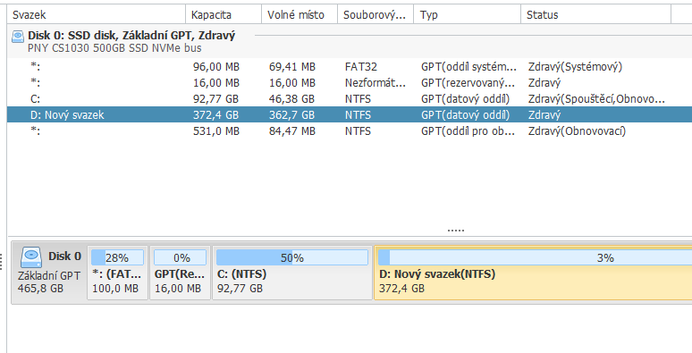O jakém disku píšeš ??? Původní dotaz byl o externím ... tam žádné jiné oddíly, než datové být nemají.