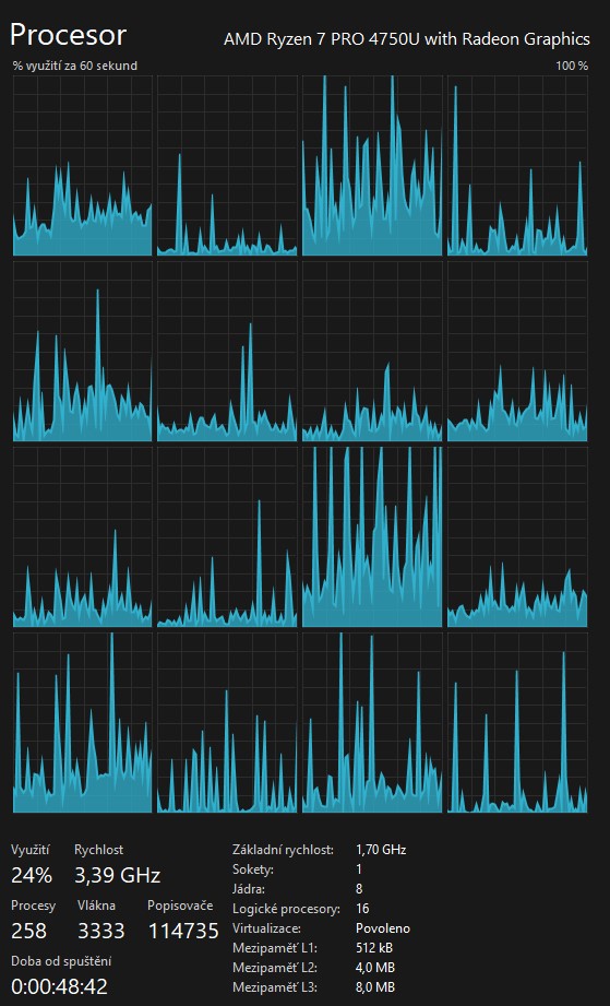 mám NTB Lenovo T14s, procesor AMD Ryzen 7 Pro 4750U.
