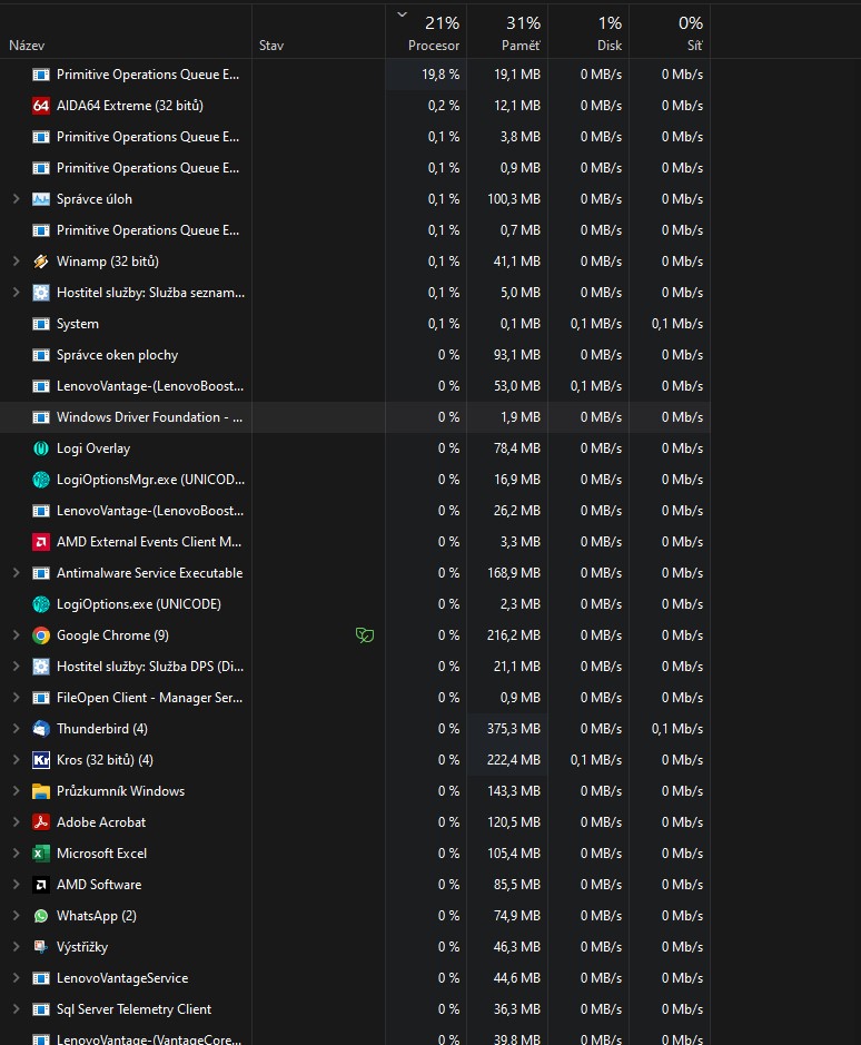 Když zabiješ ten proces, který ti žere 20 % CPU, tak to nepomůže?