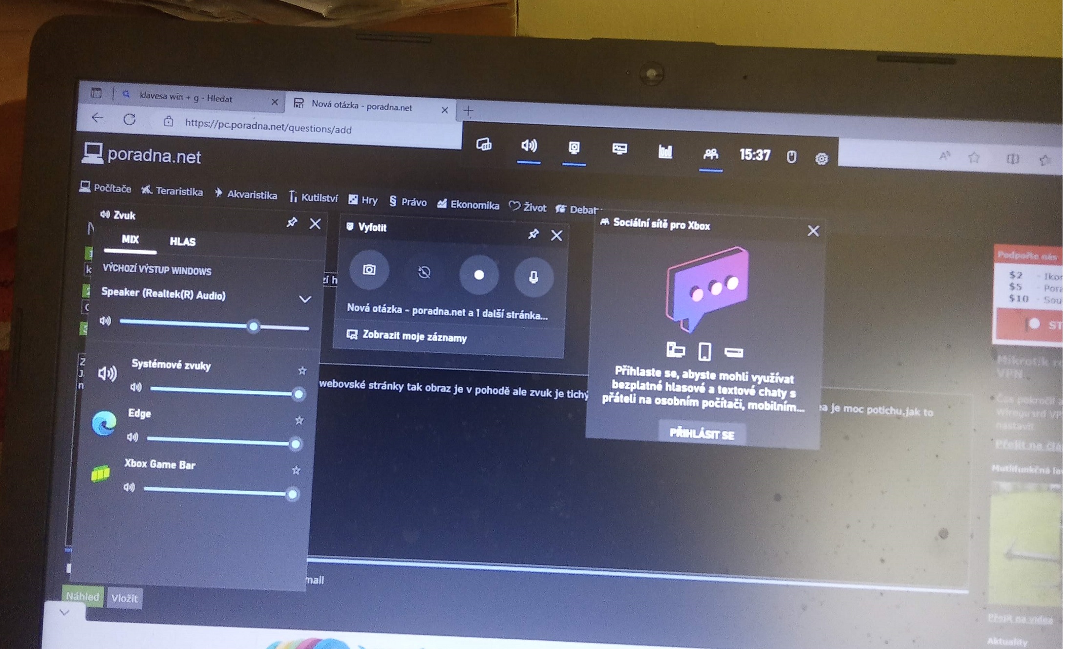 Klávesa prtscr nefunguje při Xbox Game Bar tak jsem to musel vyfotit mobilem