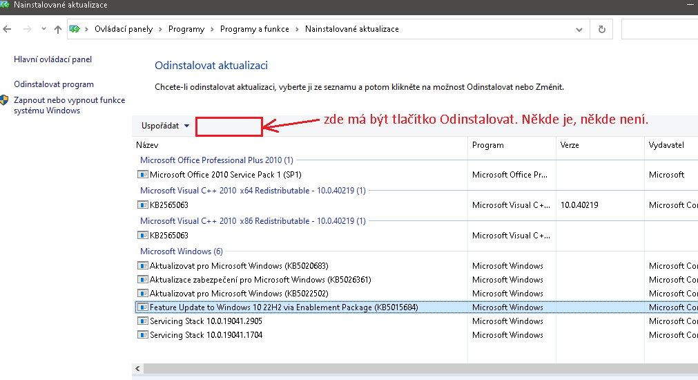 Tak bych chtěl vědět jak tuto aktualizaci odinstalovat, protože nemá tlačítko odinstalovat, jako ostatní.