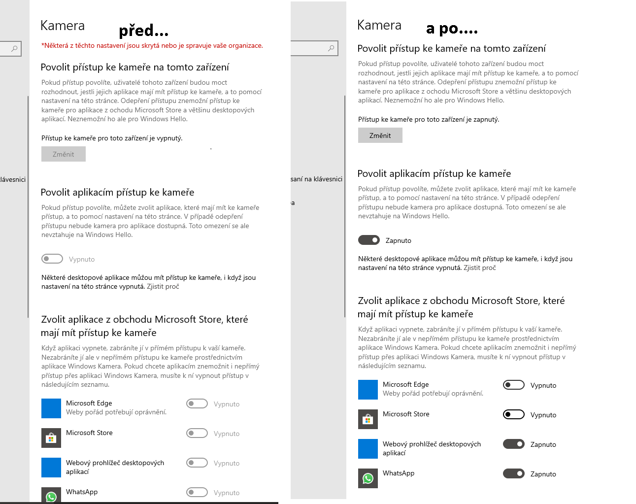 Znemožnila přístup ke kaměře a mikrofonu. Dříve, než se stáhla ta aktualizace, všechno špapalo bez problému.