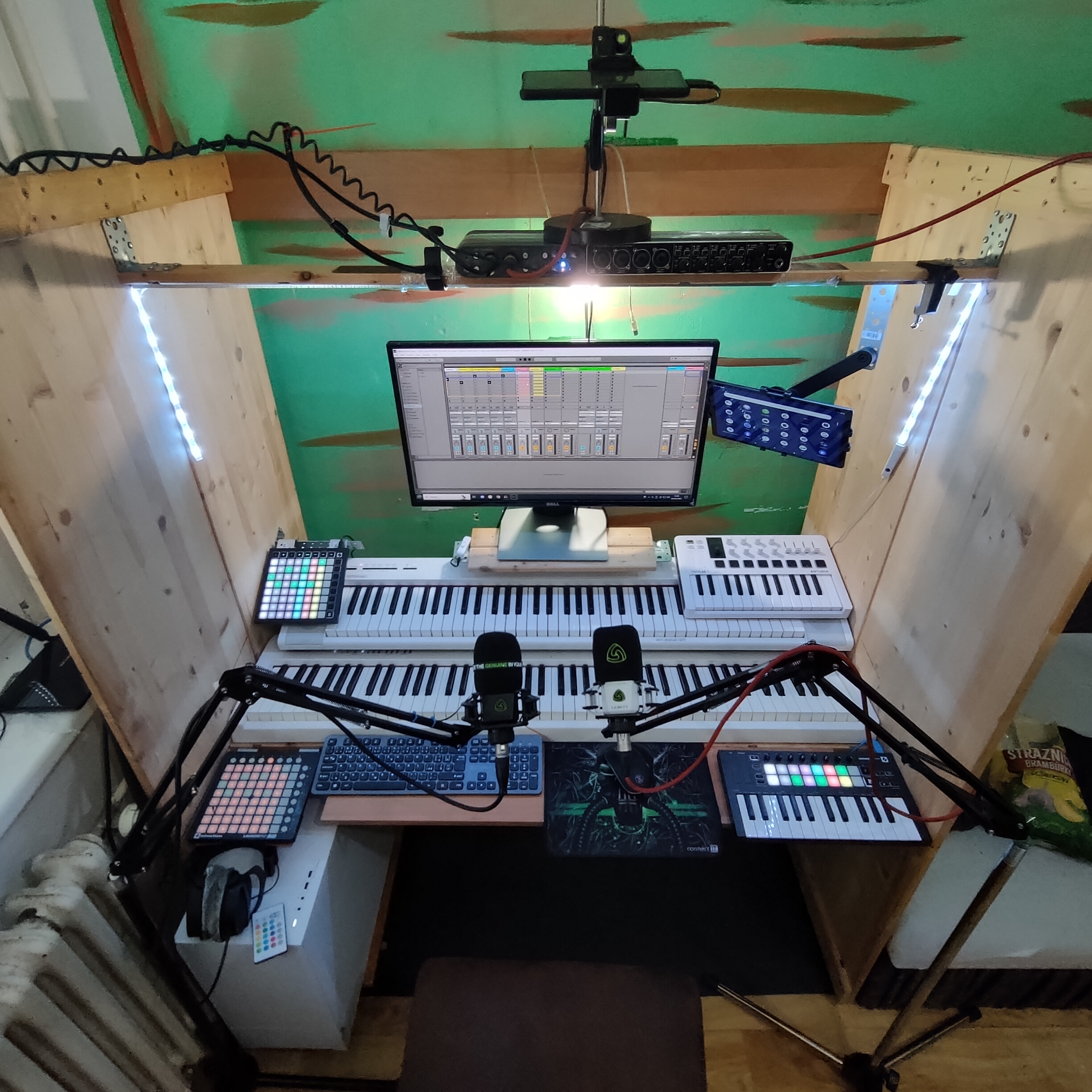Přiložím Vám sem foto mé sestavy. Bohužel není kompletní. "stůl" je prototyp, měl se dělat na zakázku, ale náhoda chtěla, že mi odešel ten notebook. Finance musím přerozdělit. 🤣