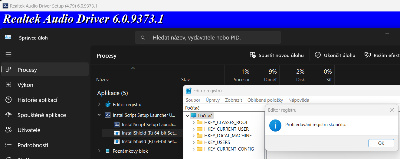 Po instalaci Windows 11 a instalaci ovladačů Realtek Audio Driver se instalátor spouští po restartu počítače stále dokola.