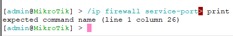 Jsem trochu googlil a otevřene porty by měl vypsat přikaz /ip firewall service-port> print