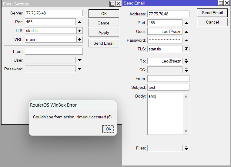 Mikrotik - email přes seznam.cz + Netwatch
