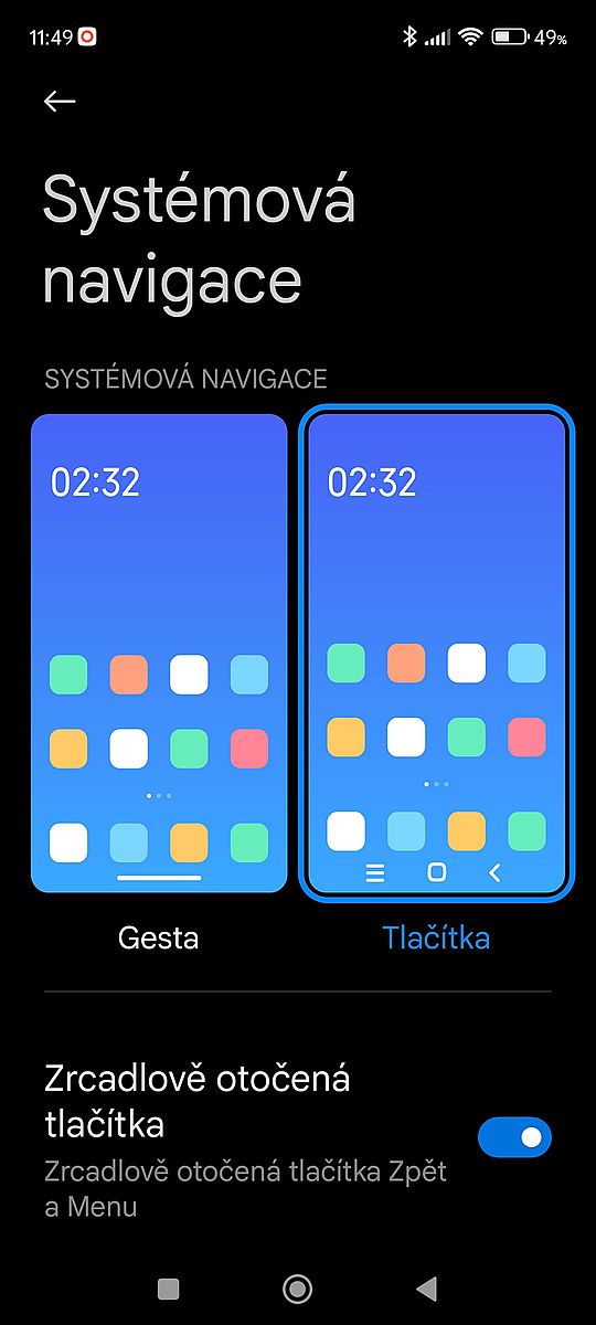 Systémovou navigaci jsem nenašla v nastavení. Omlouvám se.