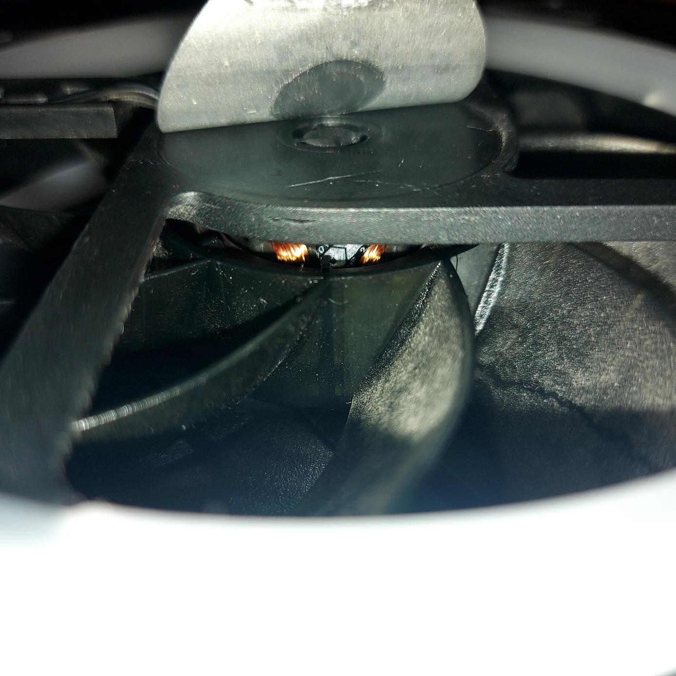 Je to tam zaslepené ( obr. 1). A také nevím jestli není moc daleko (obr 2). Také jsem přiložil video toho, jak jde ventilátor oddálit od středu, je přitahován magnety zpět, ale nejsou dost silné nasty aby nevibrovaly. Ventilátor je trochu průhledný, tak jde vidět že vnitřní el. magnety se nepohybují, ale ty statické spolu s ventilátorem jo.