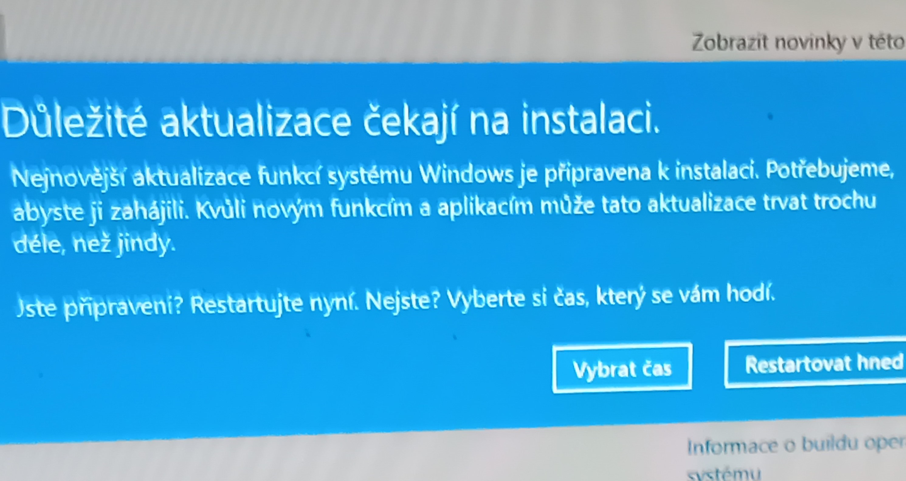 Něco Ti nefunguje? Můžeš tam dát rovnou Win 11, pokud Ti v tom nebrání starý hardware, ikdyž to jde taky.