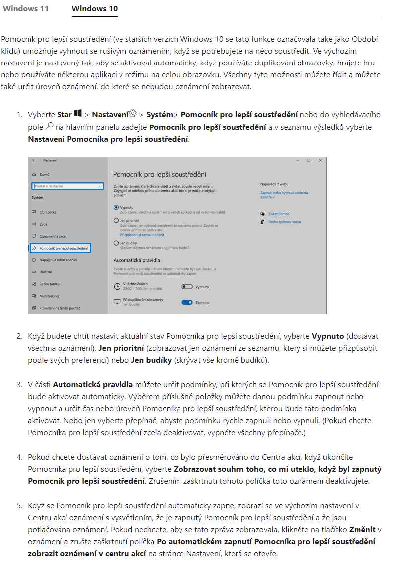 Prosím lze nějakým způsobem odebrat "Pomocník pro lepší soustředění"?
