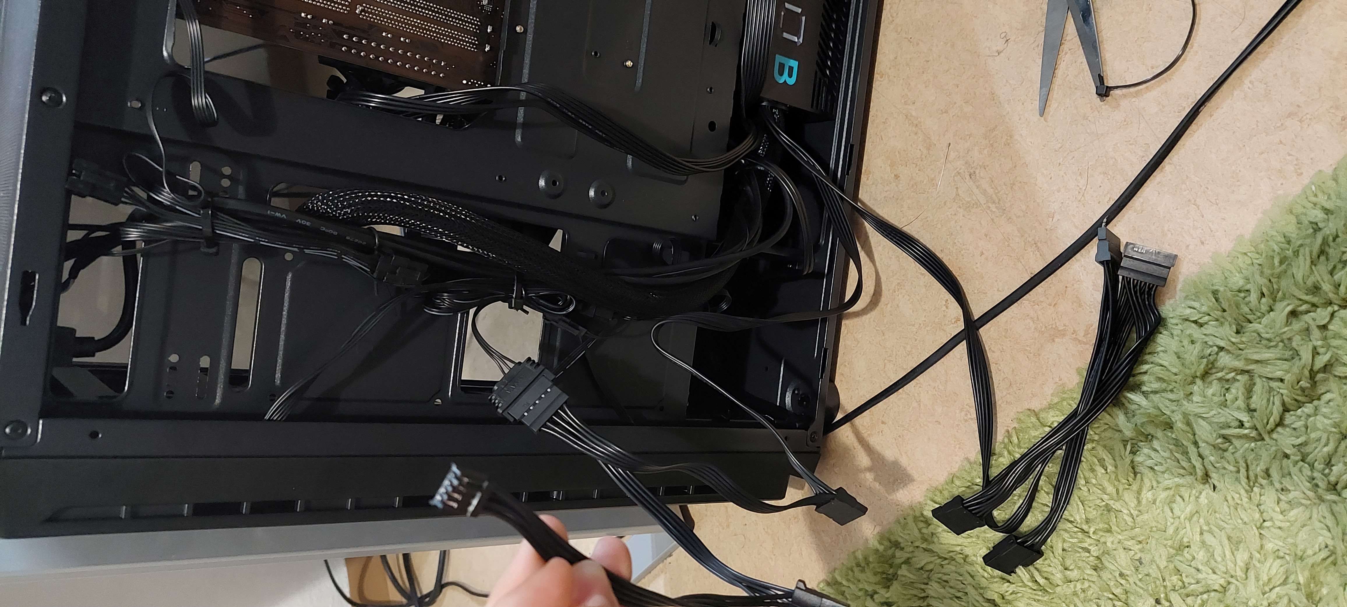 Včera jsem si objednal PC, a je docela hlučný, i když není zatížený. Větráky na skříni běží stále stejnou rychlostí. Tak jsem se do toho pustil a zjistil, že nejsou připojeny k základní desce (motherboard) do Sys_fan1. V BIOSu nelze nastavit jejich rychlost. Zadní část PC má několik kabelů, ale moc se v tom nevyznám. Nevíte, který kabel mám zapojit do toho Sys_fan1, jestli ten dolní kabel tam nějak dotáhnout a připojit, nebo použít nějaký extender na ten horní?