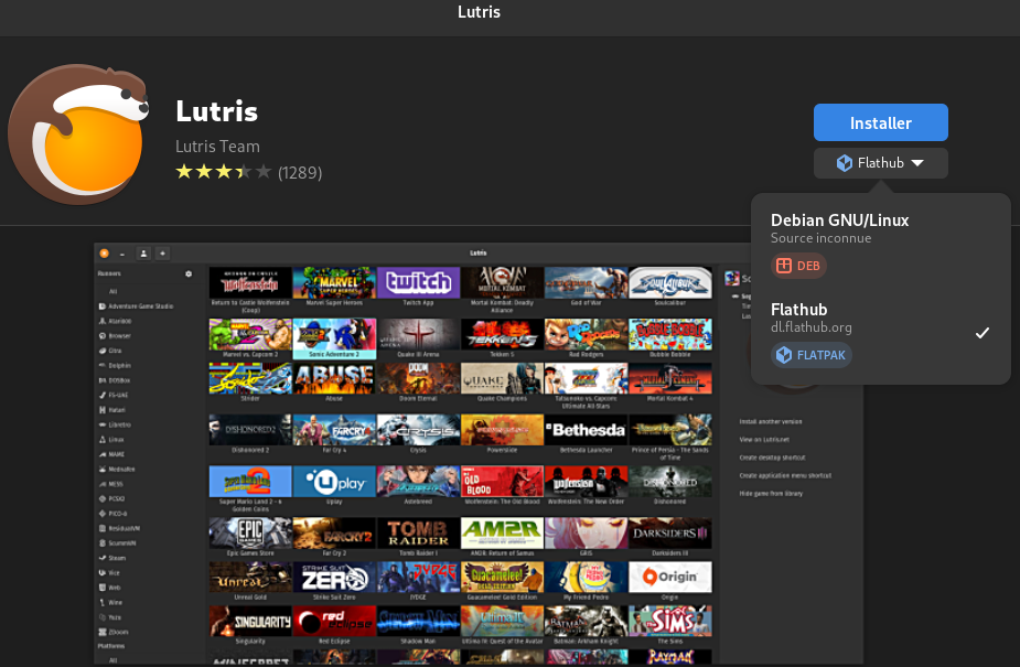 LUTRIS je jak pises; Jen kliknout na install, nic vic. Jen pouzivam pro aplikace FlatHub. FLATHUB STORE for LINUX : https://flathub.org/