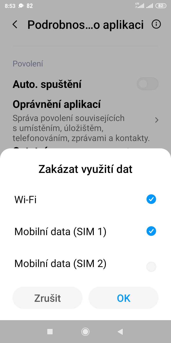 Zkontroluj si v oprávnění aplikace, zda může používat mobilní data