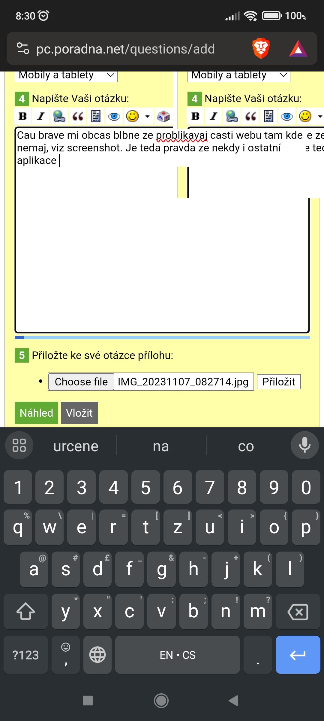 Brave prohlížeč android, blbne