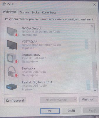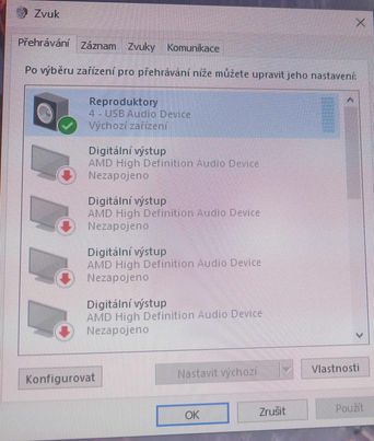 Ta dole je taky v systému jako USB tak ji označ a nastav jako výchozí