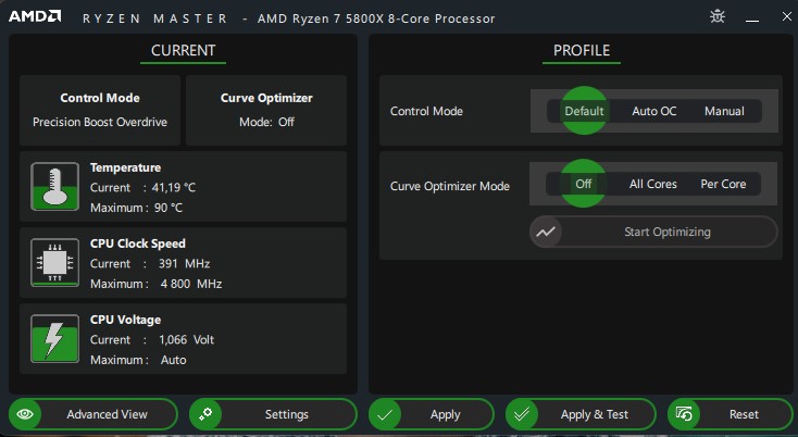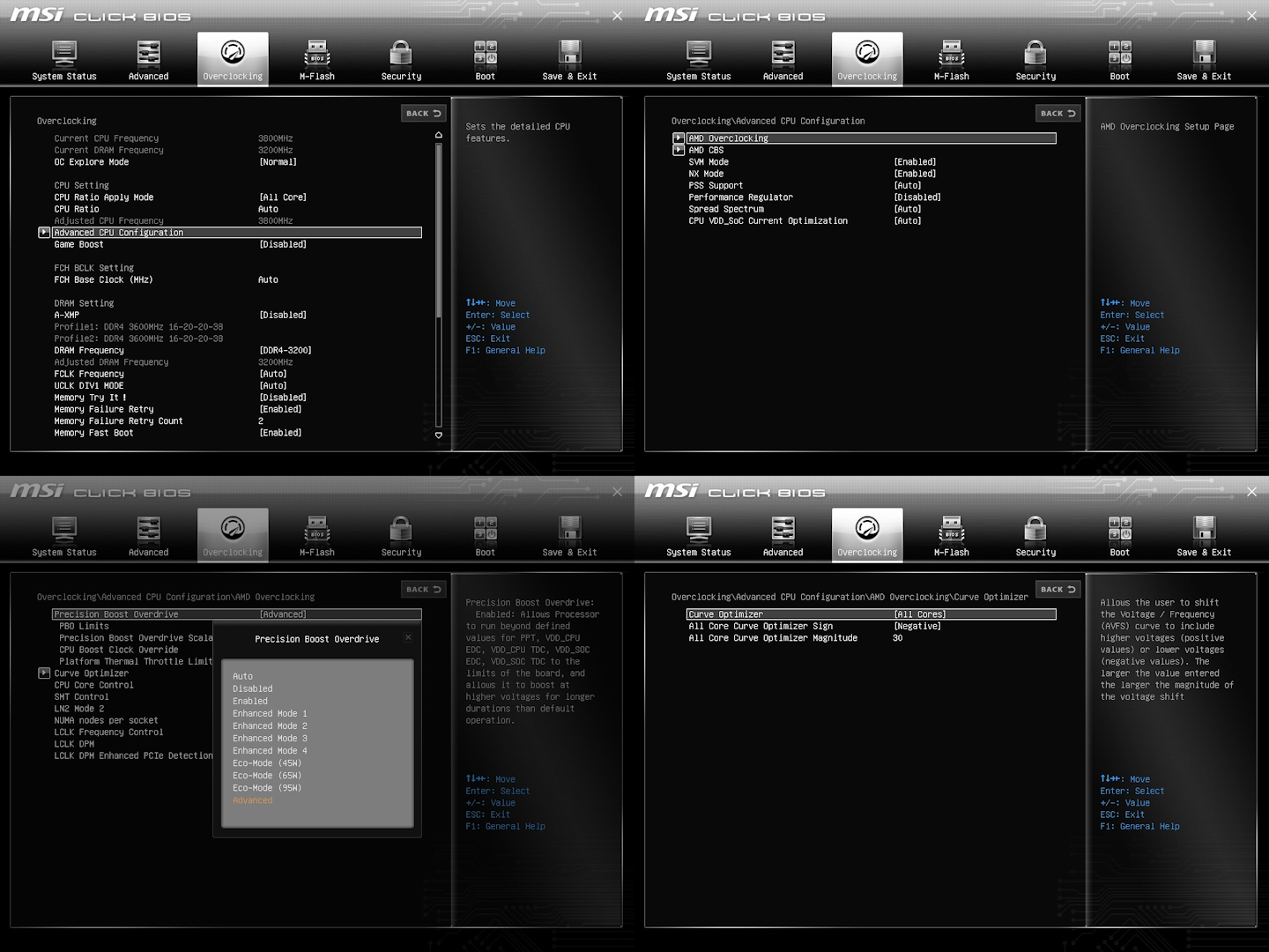 Složitější nastavit PBO na Advanced a vyladit Curve Optimizer pro všechny jádra (all cores) a začít s hodnotou negative 10 a odzkoušet stabilitu - tohle nastavení optimalizuje (sníží) nastavení napětí pro jednotlivé jádra, zároveň pak CPU může boostovat na vyšší frekvenci (vejde se do TDP limitu) ve výsledku dává vyšší výkon a nižší teploty, já používám hodnotu -30 a je zcela stabilní. S výchozím nastavením je to na vzduchu v létě naprosto neuchladitelné.
