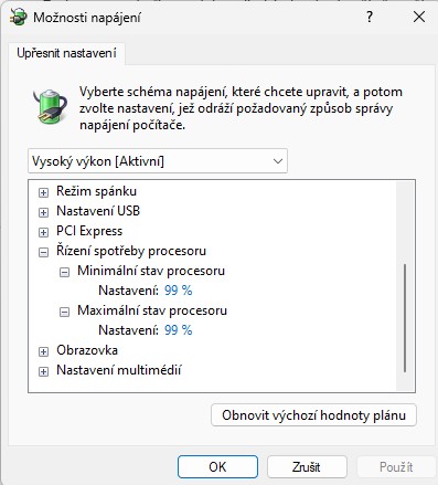 Jinak ještě jsem našel jednu možnost, že se to upraví ve schematu napájení ve Windows. Viz. obrázek…