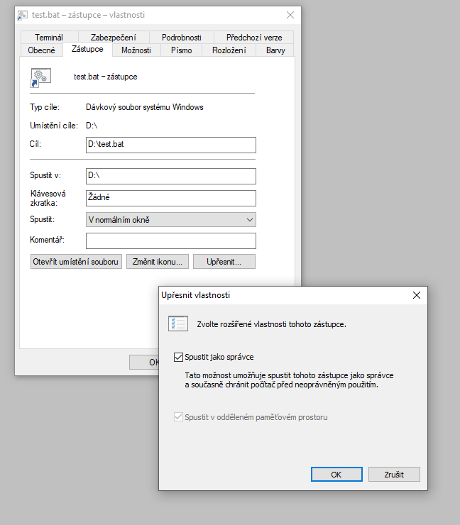 Jak spustit (bez dalších potvrzení) *bat jako správce?