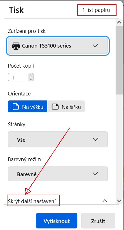 Tisk od strany použít nejde? Ještě bych se podíval do editoru předvoleb (Menu - Nastavení - vyhleda…