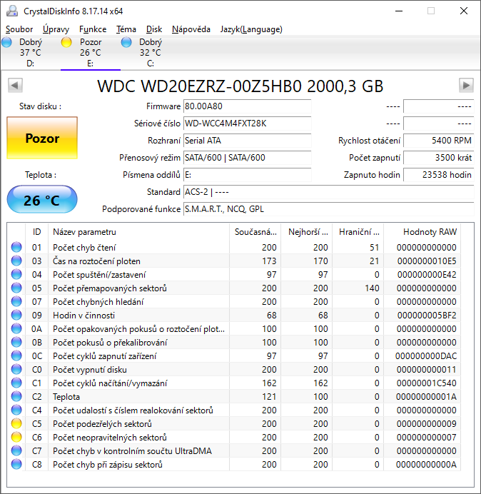 čili ne že by disk nejel, ale ten počet chyb už není malý a pokud se trefí do místa s tvými cennými soubory, nebudeš rád.